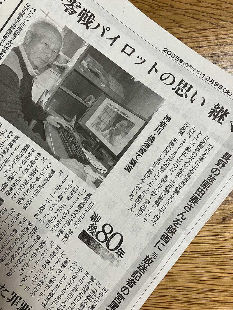 私自身も、太平洋戦争末期の昭和19年9月、茨城県の土浦海軍航空隊に志願して入隊し、予科練生として訓練に励みました。その当時から原田さんはゼロ戦のエースパイロットとして、私の憧れの存在であり続けました。